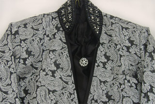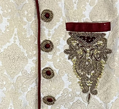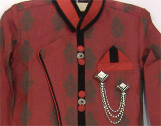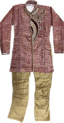 Sherwani Suit Broacade slik sherwani and baloon churidar style pants. 3 pieces - Sherwani, Pants, ornamental brooch SIZE 5 Catalog No. 247-B12