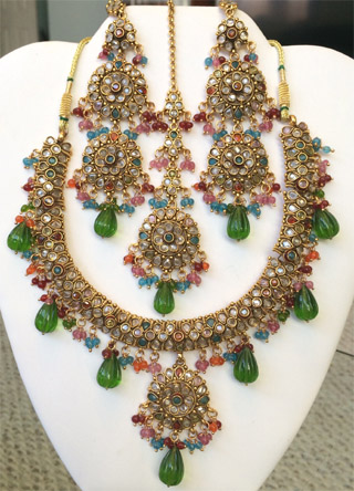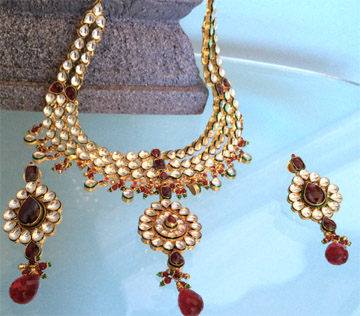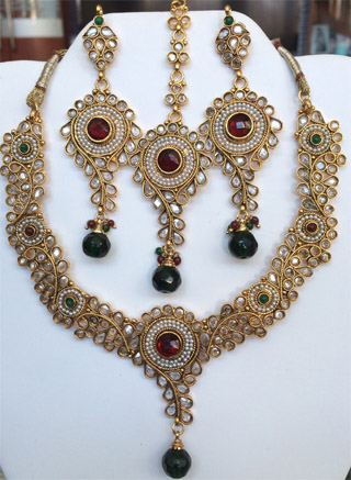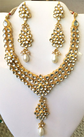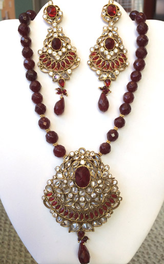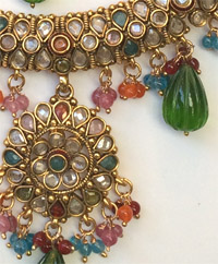 Meenal's Indian Fashions carries an extensive selection ladies fashion jewelry - necklace sets, bangles - both ladies and girls' sizes, designer earrings, anklets, arm-tattoos, stick-on armlets, bundis, tikas, lakh jewelry etc.
